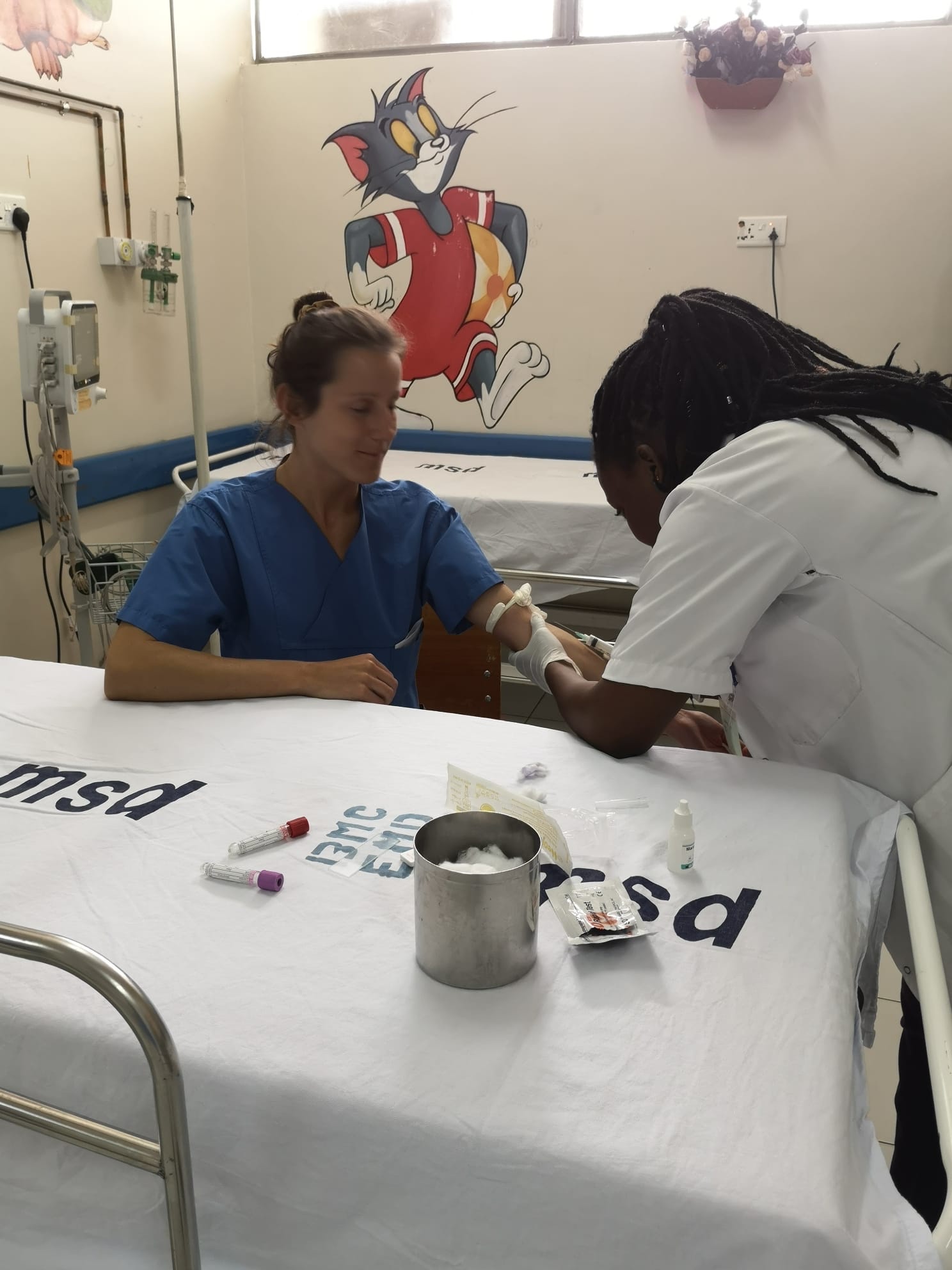 Heute morgen haben wollten wir bei Rebecca Blut abnehmen lassen, weil sie sich seit 2 Wochen nicht so wohl fühlt. Dies war eine Prozedur, die ca. 2h dauerte. Zuerst mussten wir an einen Schalter gehen und dort eine Prepaidkarte mit Guthaben drauf für die Arztkonsultation kaufen. Dann mussten wir an einen anderen Schalter um die Quittung dafür zu bekommen. Als wir diese Dinge hatten konnten wir zu einem Arzt und ihm sagen was wir brauchen. Dieser hat dann Blut abgenommen und aufgeschrieben wieviel wir dafür bezahlen müssen. Mit der Rechnung mussten wir wieder an den Zahlungsschalter und danach wieder an den Quittungsschalter. Mit der Quittung haben wir dann die Laborresultate bekommen. Und zum Glück sieht das Blut gut aus. Das bedeutet, dass die Symptome sehr wahrscheinlich Nebenwirkungen der Malarone sind….