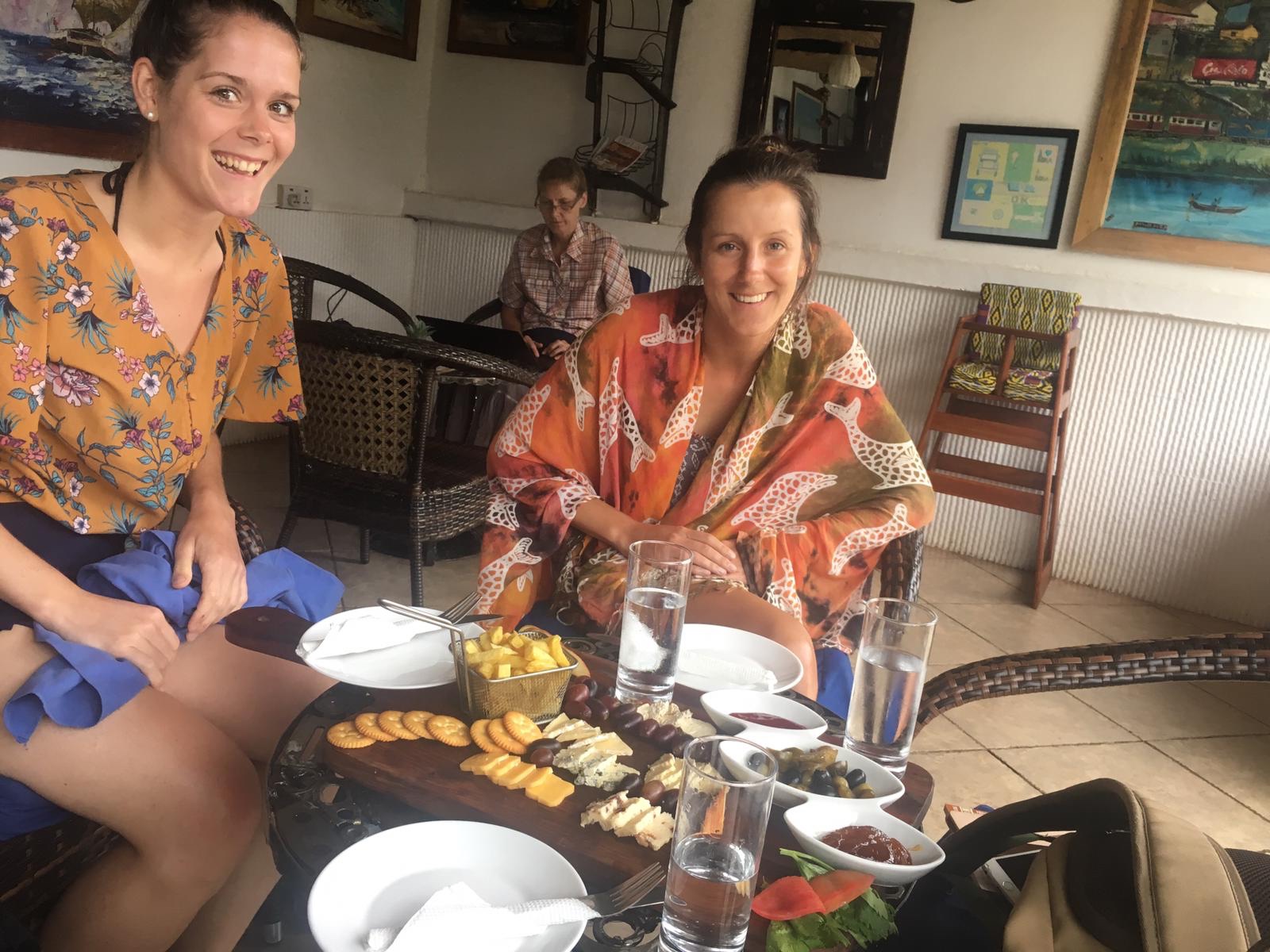 Nach dem aufregenden Samstag wollten wir nun am Sonntag einen gemütlichen Tag am Pool verbringen. Als wir im Tilapia Hotel ankamen hat es aber leider gerade angefangen zu regnen. Wir wollten dann warten bis es aufhört zu regnen, doch leider hat es nicht aufgehört. Lucy hat dann per Zufall mit dem Chef des Hotels geredet und ihm gesagt, dass wir für den Pool bezahlt haben aber nicht in den Pool konnten. Daraufhin hat er gesagt er bringt uns eine Käseplatte.